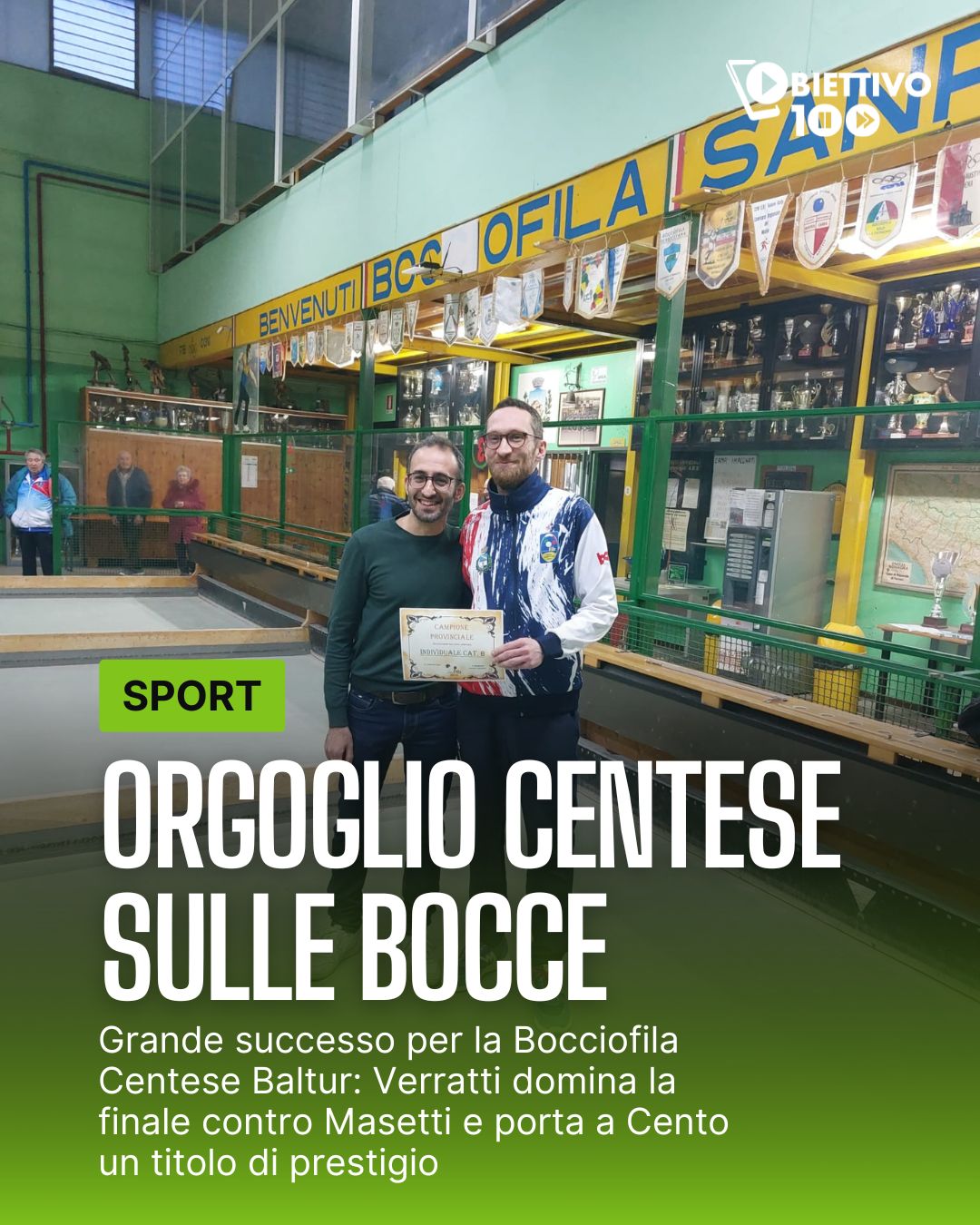 CENTO – Splendida affermazione per la Bocciofila Centese Baltur, che festeggia il titolo provinciale di categoria B grazie alla prestazione impeccabile di Matteo Verratti. In un tabellone competitivo che ha visto sfidarsi i migliori atleti del comitato unificato Bologna-Ferrara, Verratti ha confermato il suo ottimo......