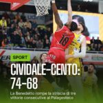 13 Nov CIVIDALE – CENTO 74 – 68: LA BENEDETTO ROMPE LA STRISCIA DI TRE VITTORIE CONSECUTIVE AL PALAGESTECO