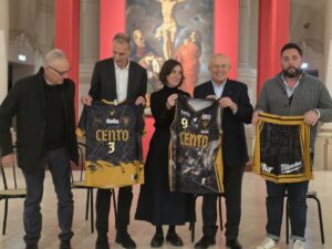 E poi c’è un dettaglio che sembra piccolo, ma non lo è affatto: la società ha messo in vendita maglie, felpe e merchandising ufficiale con lo stesso simbolo e con la scritta Cento in oro. Un gesto semplice, ma potentissimo. Perché quel logo non è pensato solo per i tifosi — anzi, parla a tutti i centesi. È un orgoglio che si può indossare, anche se non hai mai tirato un tiro libero o non sai cos’è un pick and roll. Io stesso, che non vesto colori sportivi da una vita, appena finita la conferenza ne ho ordinate una e una felpa, da portare in viaggio, in città, ovunque. Perché quel “Cento” dorato dice una cosa molto chiara: appartenenza.