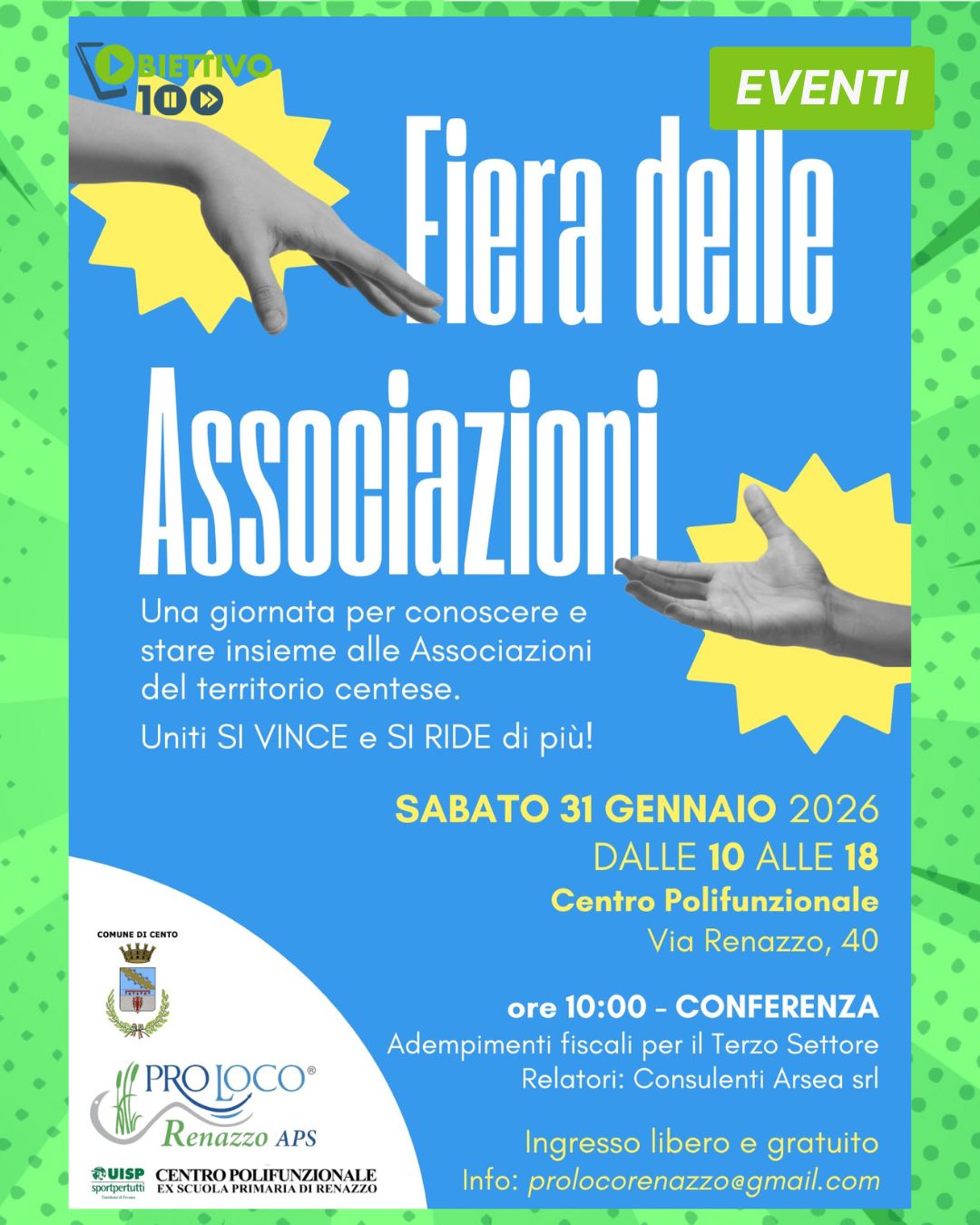 Per un’intera giornata, Cento si ritrova sotto lo stesso tetto: quello della sua comunità. La Fiera delle Associazioni riunisce realtà diverse per storia, missione e sensibilità, ma unite dalla stessa volontà di costruire legami, offrire servizi e alimentare la vita culturale, sociale e solidale del territorio. Un’occasione per i cittadini di scoprire da vicino chi anima la città ogni giorno, e per le associazioni stesse di incontrarsi, conoscersi meglio e intrecciare nuove collaborazioni. Una mappa viva del volontariato e dell’impegno civico che prende forma, voce e volto in un unico grande spazio condiviso.