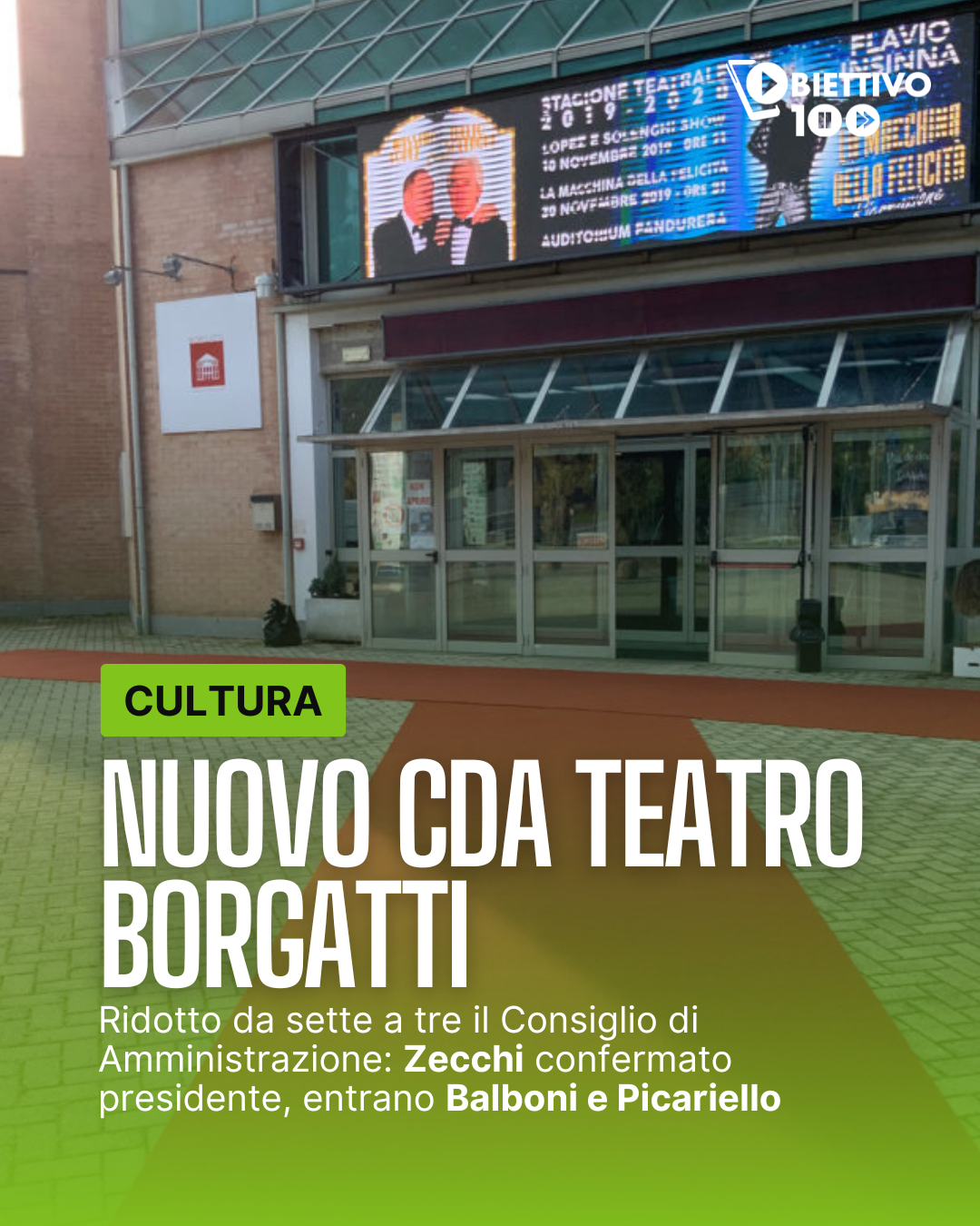 Il Consiglio di Amministrazione della Fondazione Teatro Borgatti viene rinnovato e ridotto da sette a tre membri. Giorgio Zecchi è confermato presidente, affiancato da Bernardo Balboni e Vanina Picariello. La scelta dell’Amministrazione comunale punta a garantire continuità, maggiore operatività e nuove competenze in vista della...